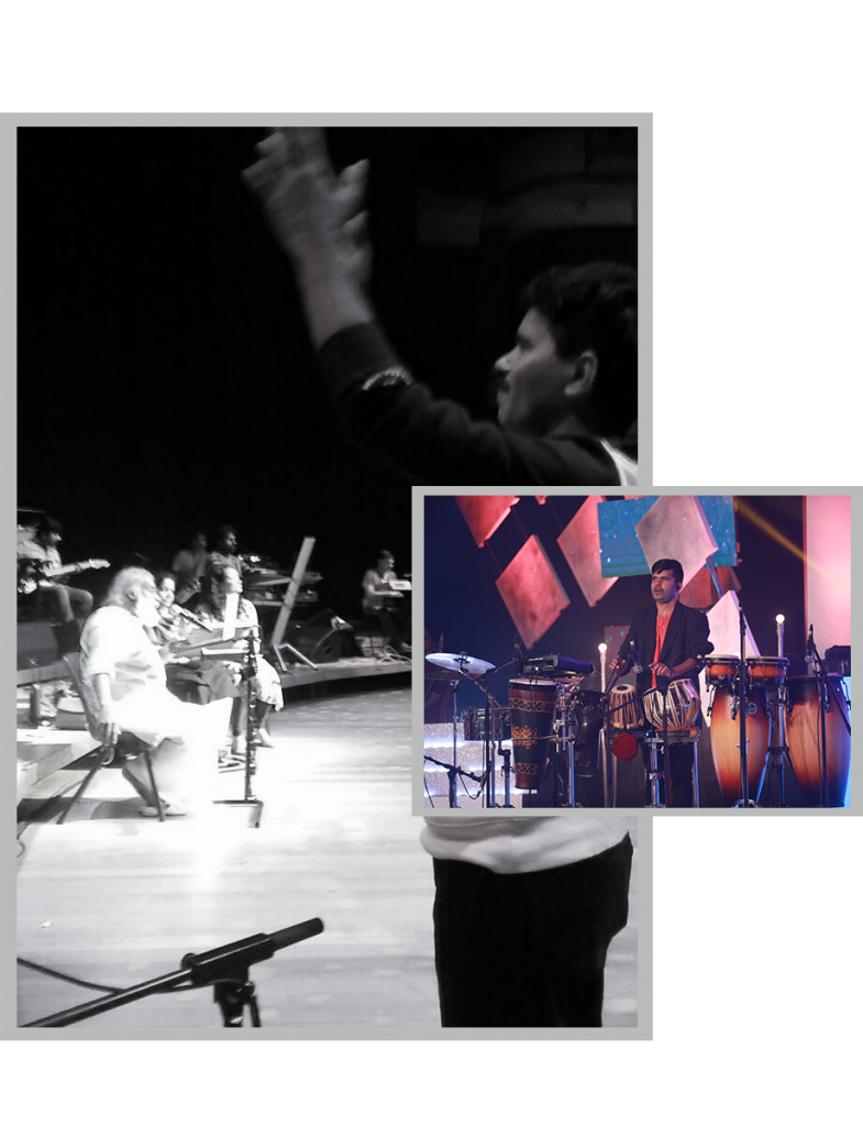 Murali’s artistic approach is solidly focused on incorporating a wide range of styles. He is versatile over both classical and western tones in his rhythm section. His rhythm section is renowned for providing the underlying rhythm, harmony and pulse of the accompaniment, which create a rhythmic and harmonic reference and beat for the rest of the band. The most common rhythm section is bass, drums, guitar and piano. His personal favourite instruments for the rhythm section includes Tabala, Mridangam, Konga, Timbales and Jazz which provide harmony, bass and percussion.